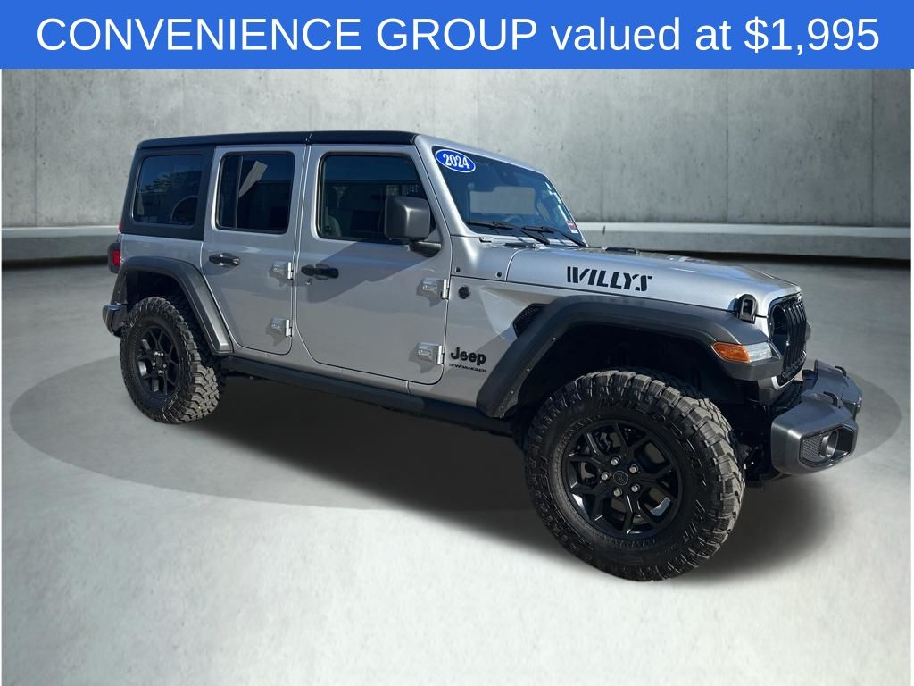 Whether you're tackling the great outdoors or navigating the urban jungle, the 2024 Jeep Wrangler Willys is ready to take you there in style and capability. Experience the thrill of open-air driving and the confidence of legendary Jeep engineering. Visit our showroom today and let us demonstrate why the Wrangler Willys should be your next adventure-ready companion.