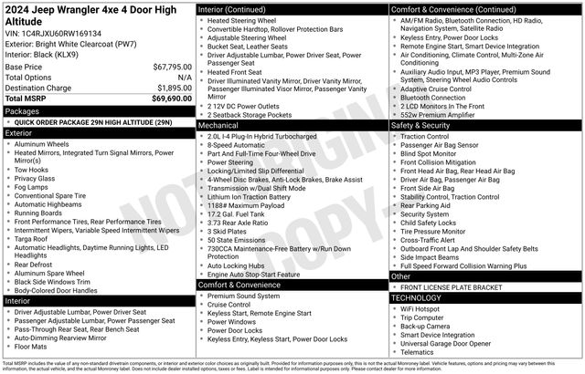Discover the ultimate in off-road capability and cutting-edge technology with the 2024 Jeep Wrangler High Altitude 4xe. This exceptional SUV combines the iconic Wrangler design with the power and efficiency of a plug-in hybrid electric powertrain, offering an unparalleled driving experience.