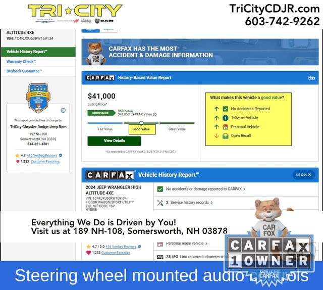 Whether you're exploring the great outdoors or navigating the city streets, the 2024 Jeep Wrangler High Altitude 4xe is the ultimate expression of rugged capability and refined sophistication. Experience the thrill of uncompromised performance and the comfort of cutting-edge technology. Visit our showroom today and discover the Wrangler High Altitude 4xe – the perfect blend of power, efficiency, and style.