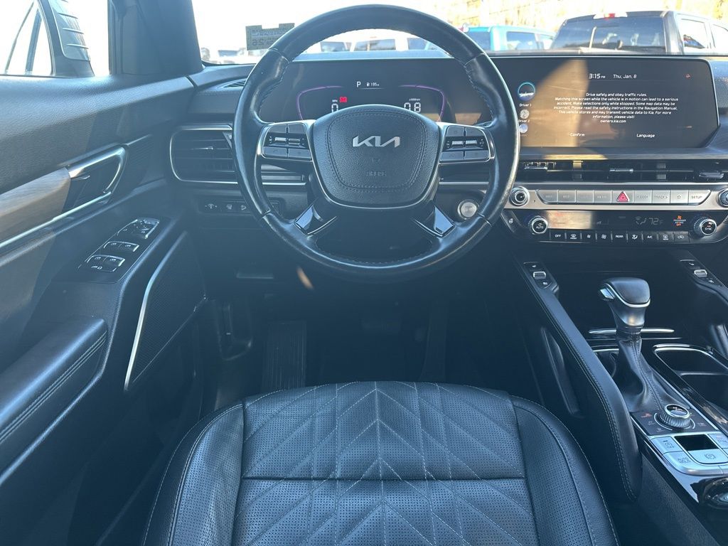 Slip into the luxurious cabin and be welcomed by the Leather Seat Trim, Heated & Ventilated Front Bucket Seats, and Reclining 3rd row seat. The Telluride's thoughtfully designed interior offers ample space and versatility, with a Power Liftgate and Wheels: 20" x 7.5" Black Finish X-LINE Exclusive, ensuring both style and functionality.