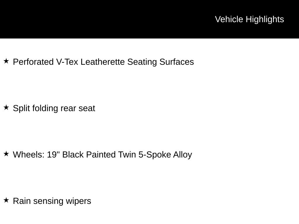 • Wheels: 19" Black Painted Twin 5-Spoke Alloy