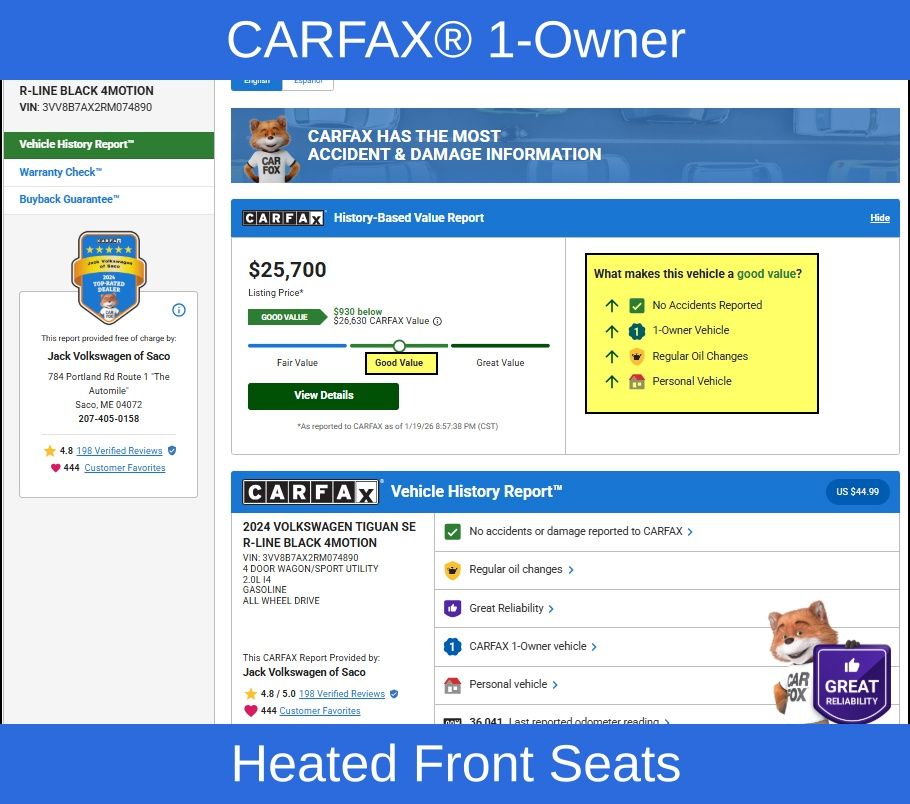 Safety is paramount, and the Tiguan delivers with dual front impact airbags, dual front side impact airbags, an emergency communication system, and Electronic Stability Control. The Exterior Parking Camera Rear and delay-off headlights further enhance your peace of mind on the road.