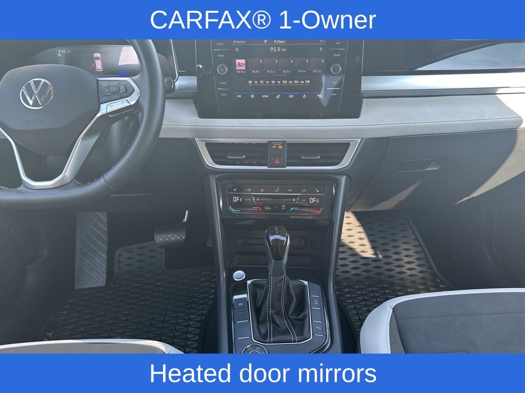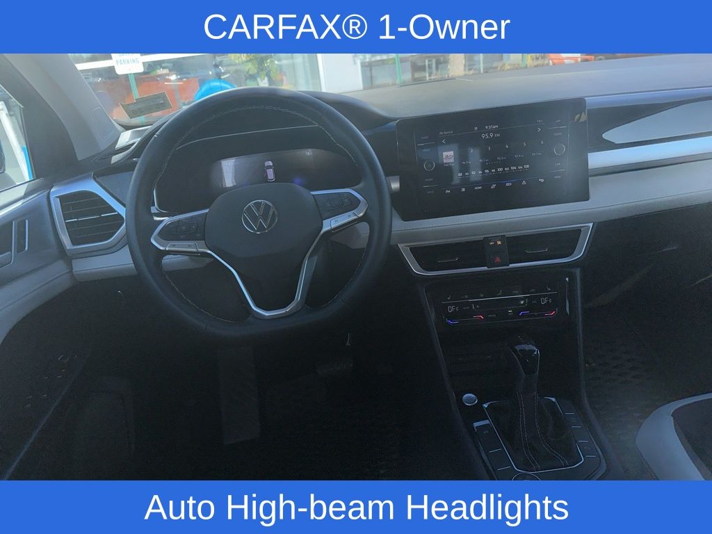 Step into the cabin of the Taos and you'll be greeted by a spacious and well-appointed interior, featuring premium materials and thoughtful design elements. The heated front bucket seats provide unparalleled comfort, while the panoramic sunroof fills the cabin with natural light, creating a truly inviting atmosphere.